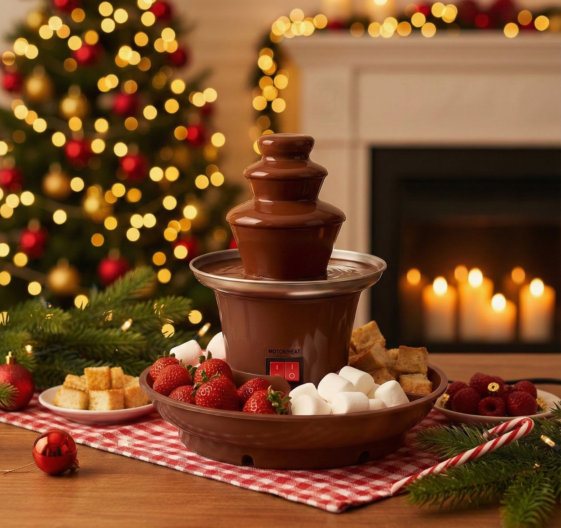 Der Brunnen läuft ideal mit 300–500 g Schokolade – perfekt für Familienabende, Partys und Events.